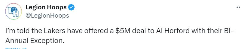 据多家媒体报道,湖人签下艾顿后并不会停止对内线的补强。有消息称,湖人已经向老将霍福德开出了500万双年特例的报价。